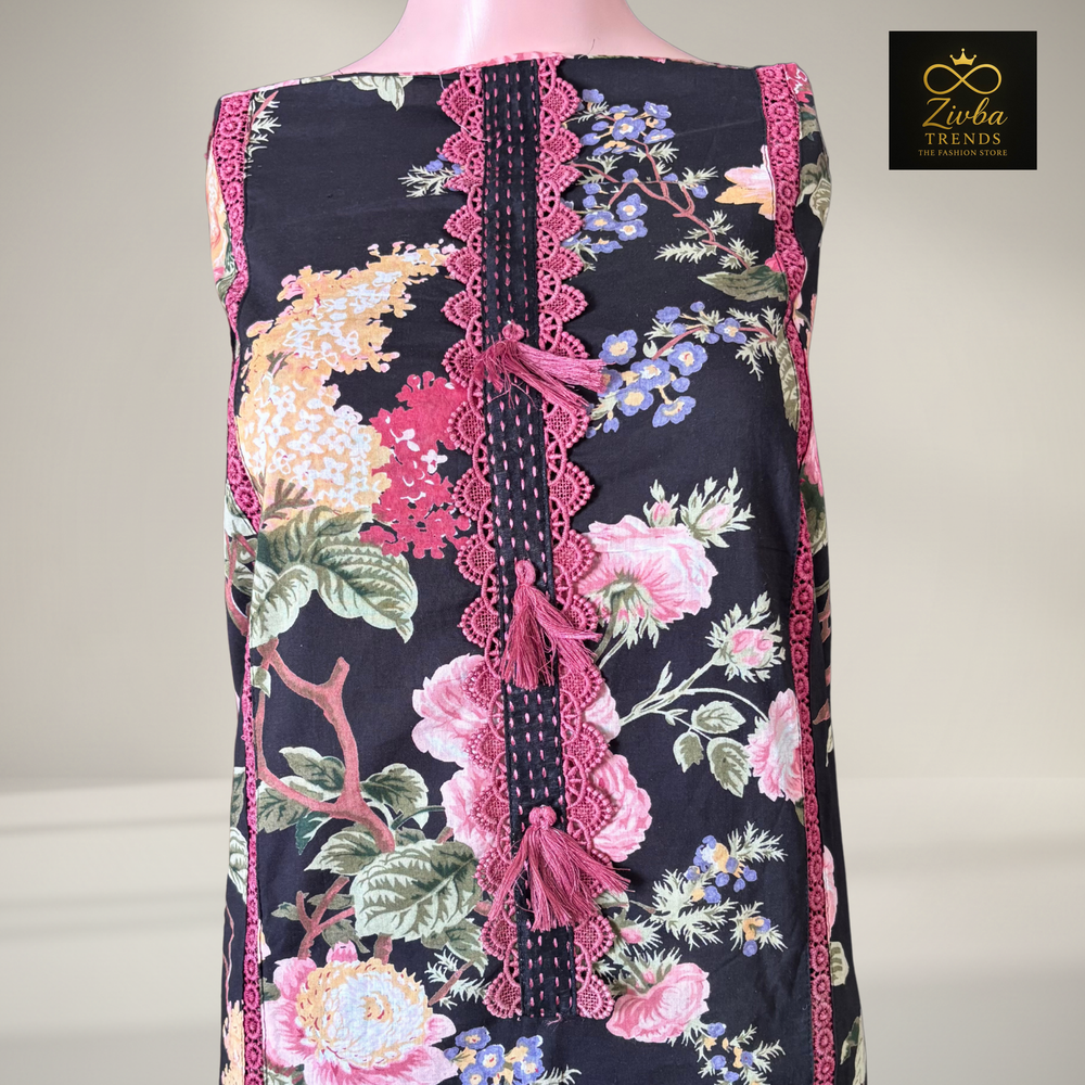 Multi-Colored Floral Printed Suit Set with Handwork Detailing